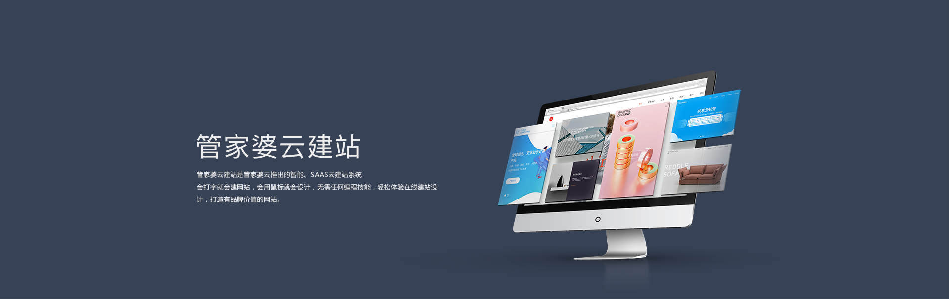 可视化操作,所见即所得,自主编辑,功能自由扩展,轻松改版,实时预览,一键生成,轻松创建响应式网站。